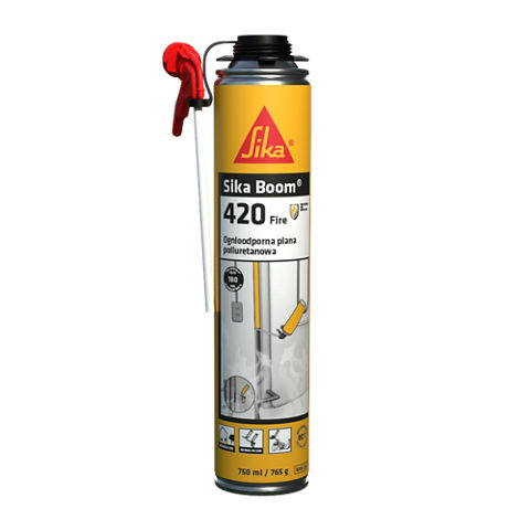 Sika Boom®-420 Fire jest jednoskładnikową, ognioodporną, ekspansywną pianką poliuretanową. Spełnia wymagania odporności ogniowej do 240 minut zgodnie z normą EN 1366-4. Zawór kombi umożliwia aplikację pistoletem lub dyszą.